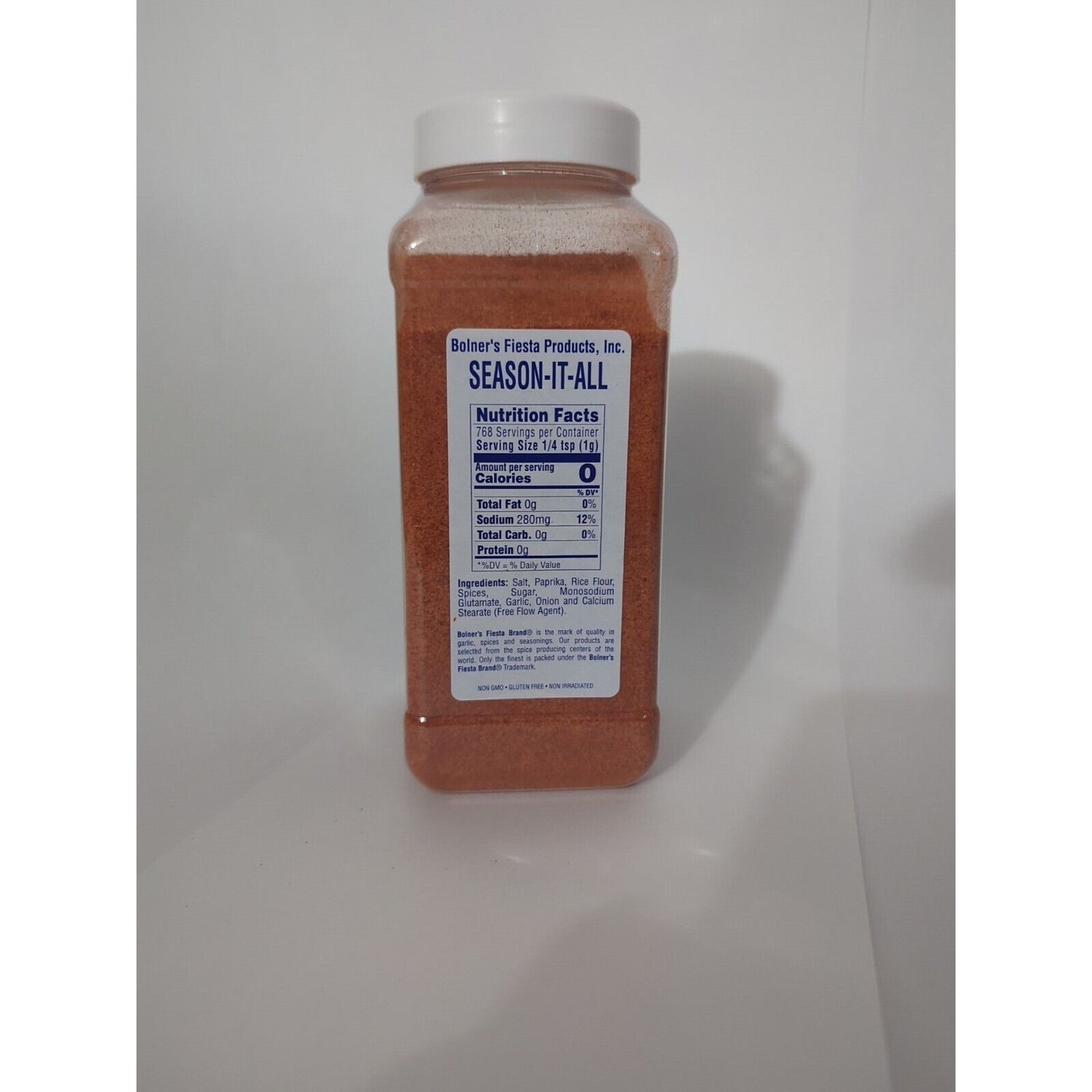 Bolner's Fiesta Season-It-All Family Original 32 Ounce Plastic Container. We ship promptly, 5 days a week. Please do not hesitate to reach out to us with any questions or requests!