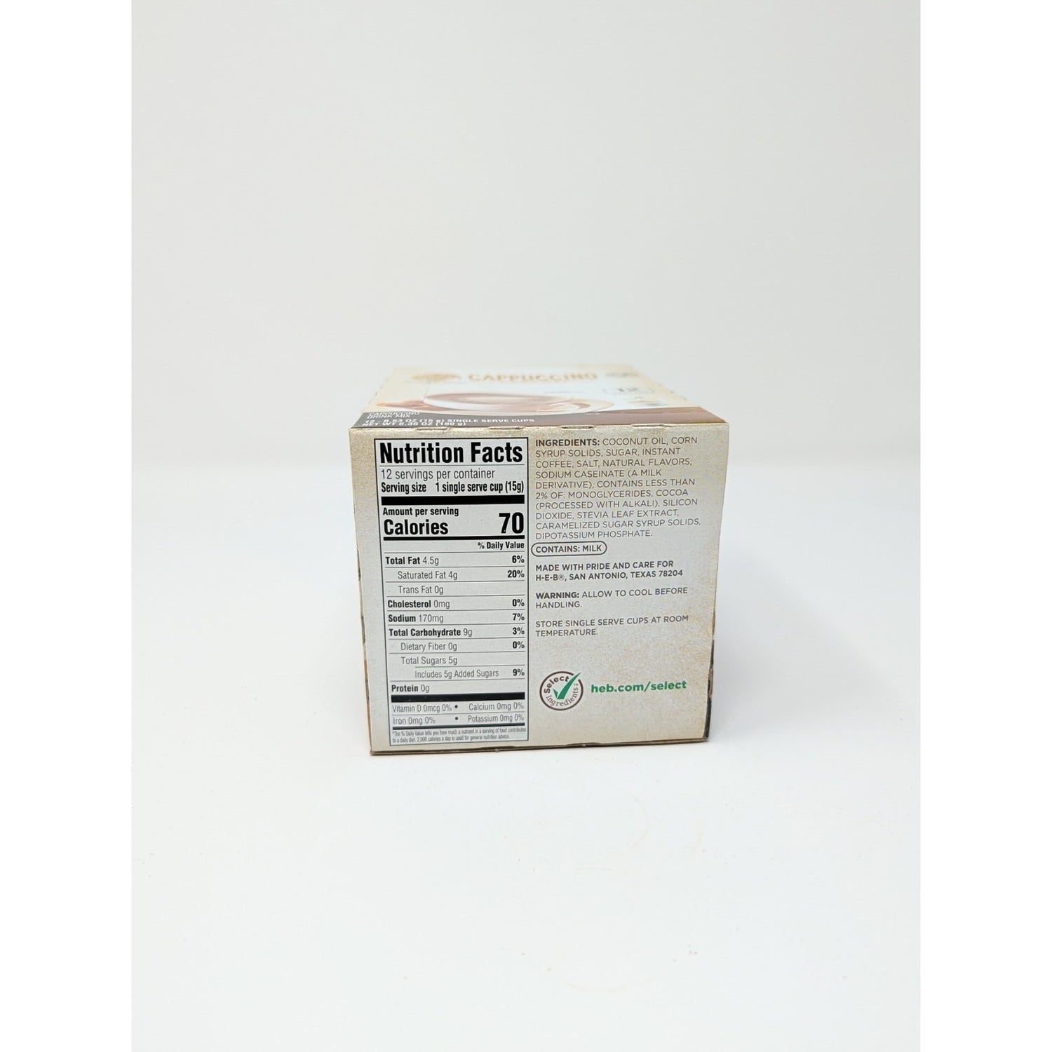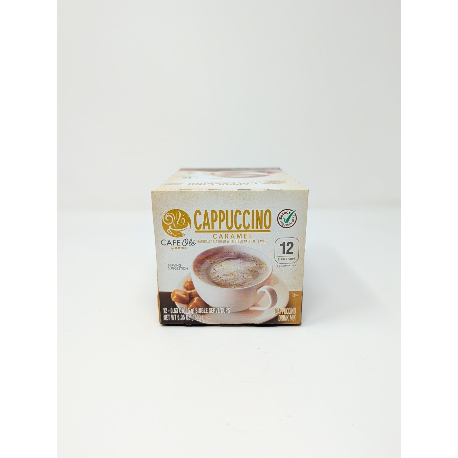 Cafe Ole By HEB Caramel Coffee Cappuccino Drink Mix K-Cups are a convenient and delicious option for coffee lovers. Each K-Cup contains 12 servings of a creamy cappuccino with a touch of caramel flavor, perfect for those who enjoy dairy in their coffee. Made with Kosher ingredients, this drink mix is compatible with Keurig machines and has 70 calories per serving. The Caramel Coffee Cappuccino Drink Mix is an excellent choice for those looking for a tasty and satisfying beverage to enjoy at home.