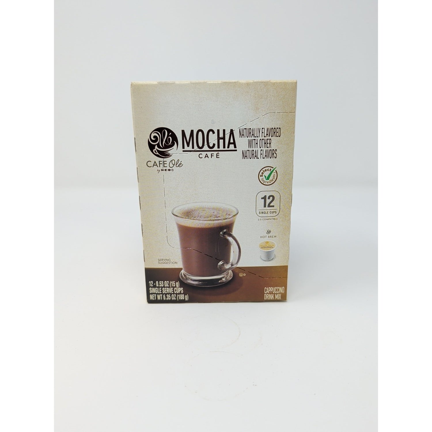 Cafe Ole By HEB Mocha Cafe Coffee Cappuccino Drink Mix K-Cups are convenient coffee pods designed for Keurig machines. With a creamy cappuccino flavor, these 12-count K-Cups mix in milk for a luxurious coffee experience. Made in the United States, this product contains 60 calories per serving and is perfect for coffee lovers looking for a pantry staple with a delicious and indulgent taste.